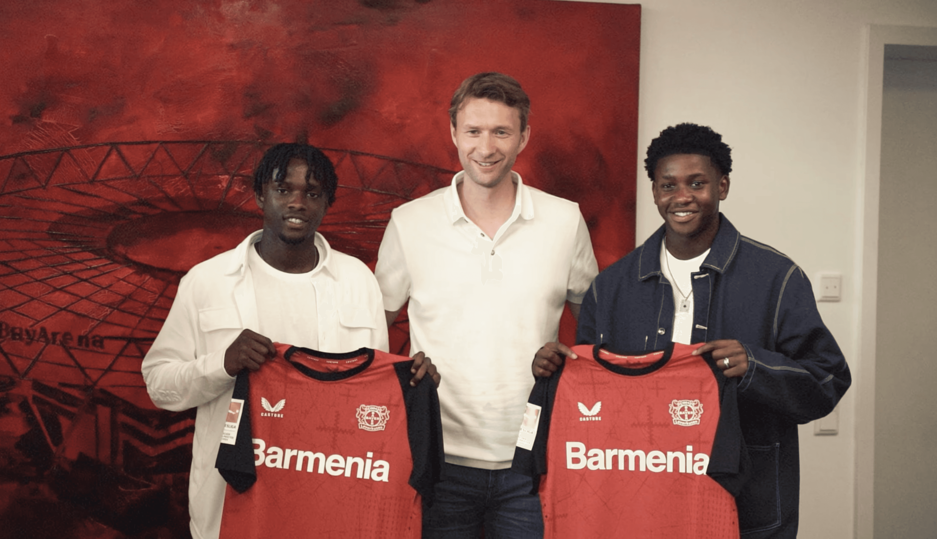 Neben den authentischen Aufnahmen aus den Familiensituationen und den Szenen rund um die Vertragsunterzeichnung bildeten die Impressionen auf dem Spielfeld der Bay Arena das Highlight des Projekts. Damit wurde die Bedeutung dieses Schrittes für die beiden Brüder noch einmal eindrucksvoll inszeniert, von der Unterschrift bis hin zum Traum, eines Tages selbst vor ausverkauften Rängen auf diesem Platz zu stehen. Um die Stimmung zusätzlich zu verstärken, ergänzten wir die Szenen mit eindrucksvollen Drohnenaufnahmen des Stadions aus der Luft, die den imposanten Charakter der Bay Arena unterstreichen. So entstand eine filmische Dramaturgie, die sowohl die persönliche Nähe als auch die Größe des Moments transportiert. Abgerundet wurde das Ganze durch kreative Bild-in-Bild-Übergangseffekte, die dem actiongeladenen Kurzvideo eine besondere Dynamik verliehen und es perfekt für die sozialen Medien machten.